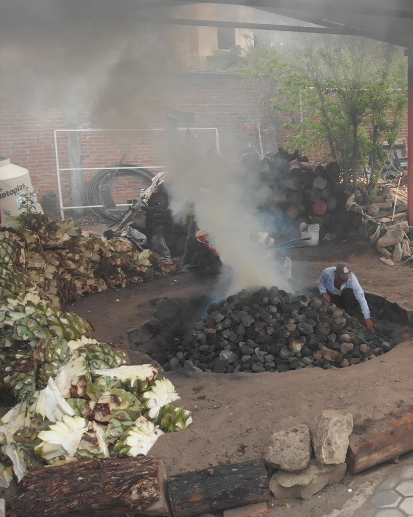 Las piñas de agave se cuecen lentamente en hornos cónicos de piedra, bajo tierra.