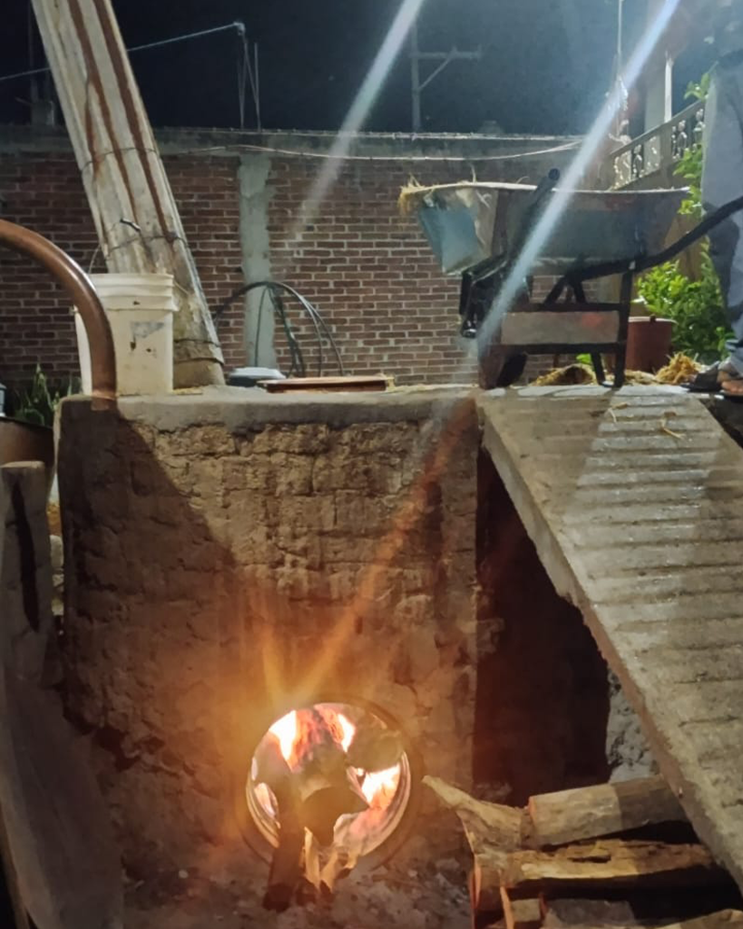 Se utiliza leña y piedra volcánica, permitiendo una cocción prolongada que transforma los azúcares y da origen a los aromas ahumados característicos del mezcal.